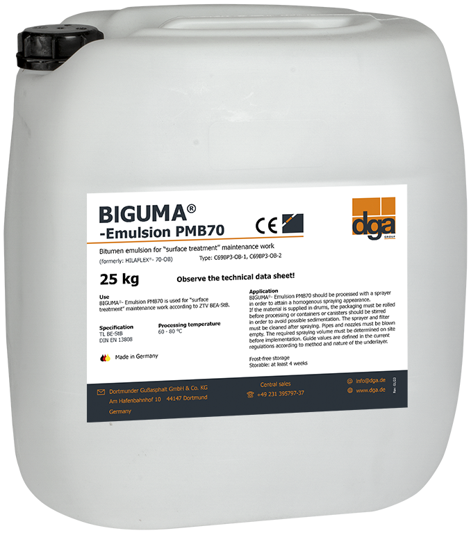 Bituminous emulsion for „splashing and gritting“ maintenance work